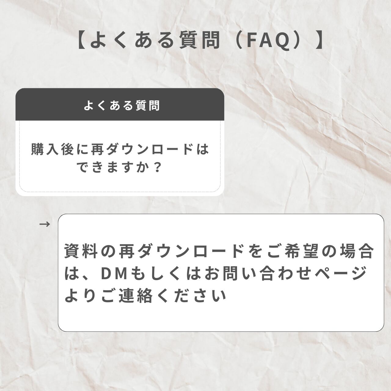 A. 資料の再ダウンロードをご希望の場合は、DMもしくはお問い合わせページよりご連絡ください。