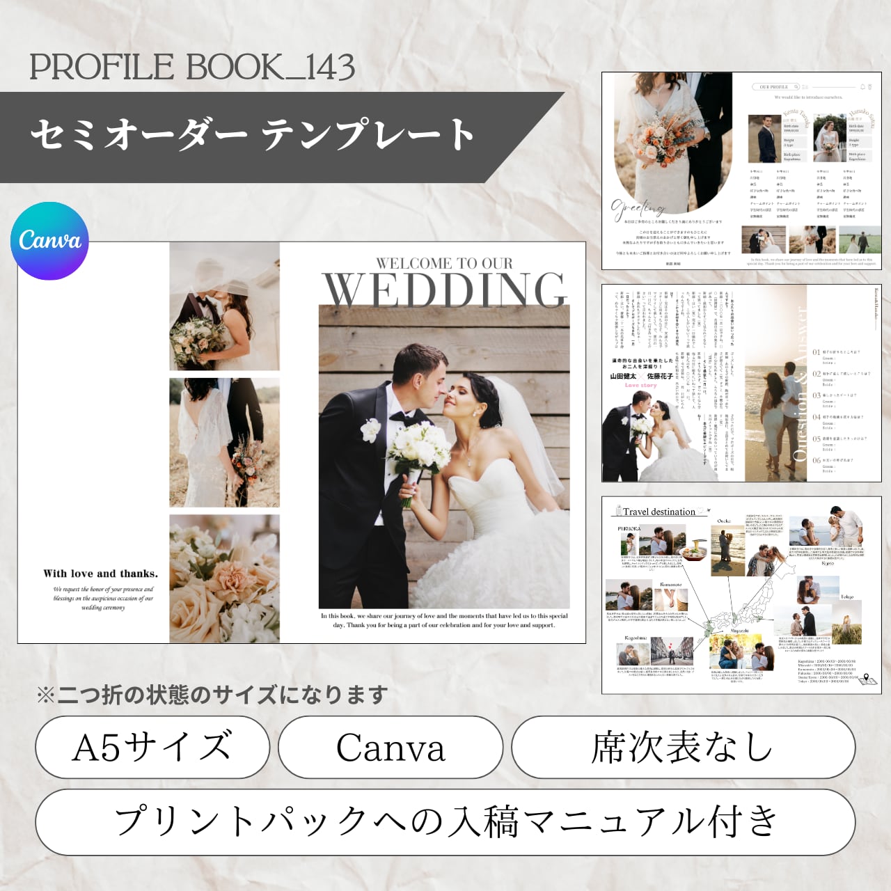 【No.143】セミオーダー_プロフィールブック テンプレート|Canva編集OK・A5サイズ|席次表付き・印刷ガイド付・スマホ対応
